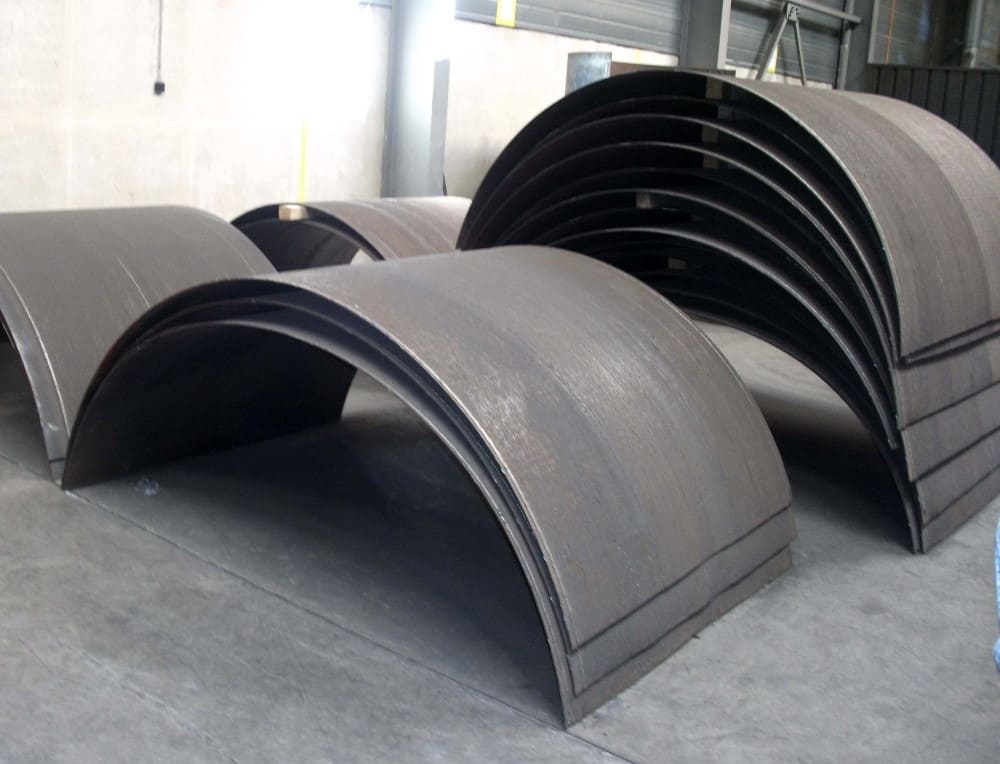 Die Verschleißschutzbleche, die auf dieser Anlage gefertigt werden, zeichnen sich durch sehr fein verteilte, nicht klaffende Risse aus und werden vielfältig in der Zementindustrie, dem Bergbau, der Stahlindustrie, im Energiesektor, der Landwirtschaft und in der Recyclingindustrie eingesetzt. Verschiedene Raupengeometrien erlauben die Verschleißschutzplatten optimal auf die Anwendung anzupassen. Eine hohe Oberflächengüte reduziert die Anbackungen der Schüttgüter auf ein Minimum.
