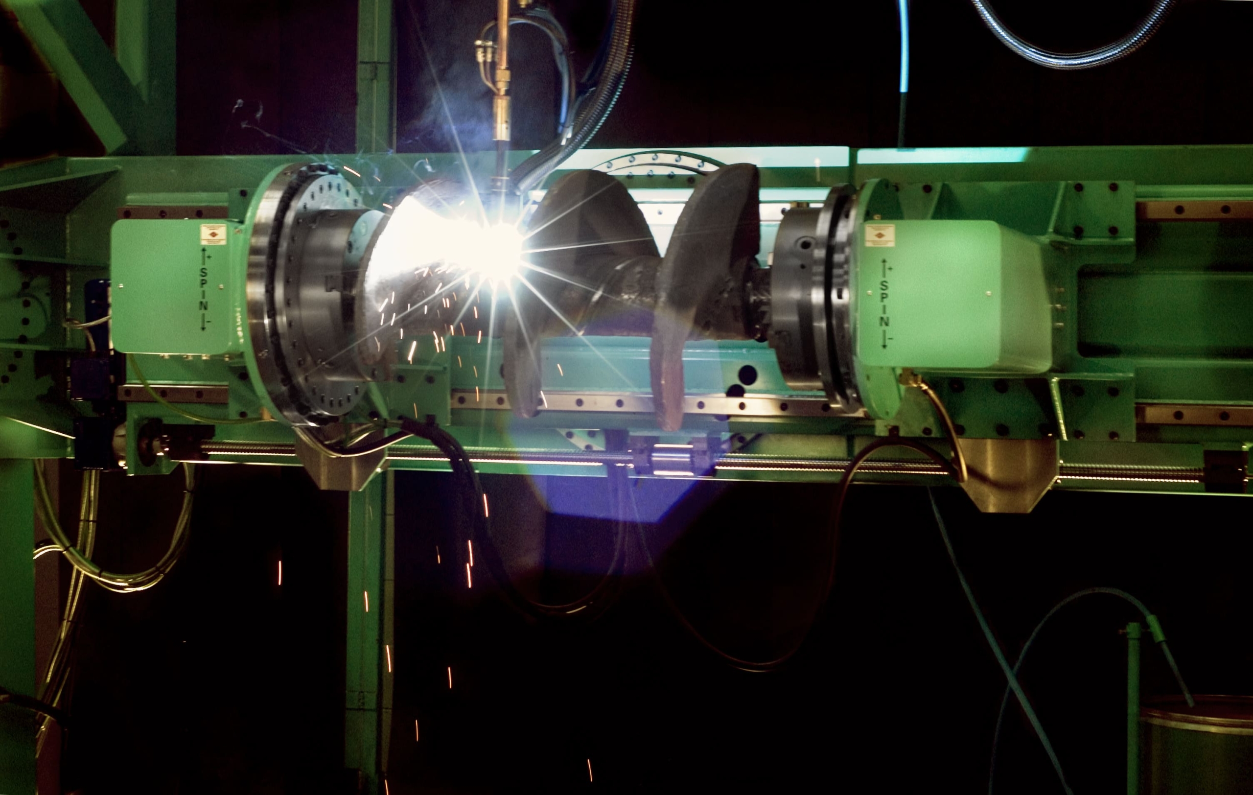 Com movimento em 5 eixos, a Screwflight mantém uma velocidade de superfície constante e permite que cada seção da rosca seja soldada na posição ideal. Isso possibilita revestir o eixo, o filete e a hélice em uma única configuração, produzindo qualidade de solda uniforme e resultados consistentes sempre.