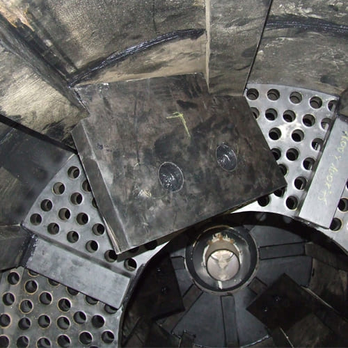 Since each ceramic pellet is completely surrounded by rubber, it further enhances the already outstanding wear resistant properties of the ceramic surface. The increase in liner life can vary from 4 to 12 times, depending on the application. The replacement of conventional liners in difficult to reach areas, can be costly and time consuming and losses in production can easily exceed that of the cost of a wear plate. Our results have shown that the increased liner life achieved through the use of Rub-Cer Wear Plates, will more than compensate for the additional cost of the plates.