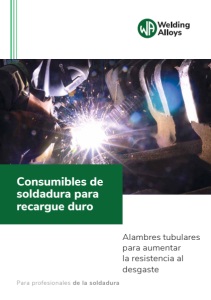 welding-alloys.com 11 Aceros de baja y media aleación Los depósitos de soldadura bainíticos y/o martensíticos son especialmente adecuados para aplicaciones que combinan abrasión moderada e impacto. Estos consumibles son fáciles de aplicar y no hay restricción en el espesor del de depósito; también tienen buena maquinabilidad (dependiendo de la dureza final). La adición de elementos clave como molibdeno, tungsteno o vanadio aumentará el rendimiento del depósito soldadura, lo que mejora la resistencia al desgaste metal-metal y la temperatura. Un ejemplo de ello serían las aleaciones de acero para herramientas (por ejemplo, ROBODUR K 650-G, que ofrece un análisis químico similar al acero para herramientas AISI H11). Producto Composición [%] - Balance de Fe Dureza 3 capas al estado de soldadura C Mn Si Cr Mo V W HARDFACE B 0.1 1.5 0.4 1 260 HB HARDFACE T 0.15 1.5 1 1.5 360 HB HARDFACE P 0.2 2 1 3 400 HB HARDFACE L 0.5 1.7 2.2 8.5 55 - 60 HRC HARDFACE LP 0.5 1.9 1 7.5 55 - 60 HRC HARDFACE CHROMEFREE 0.5 1.2 0.9 2.8 3 50 - 56 HRC ROBODUR K 250 0.1 1.5 0.5 1.6 0.2 250 HB ROBODUR K 350 0.15 1.5 0.6 2 0.2 350 HB ROBODUR K 450 0.3 1.5 0.6 2.5 0.5 450 HB ROBODUR K 600 0.5 1.2 0.6 6 0.8 54 - 60 HRC ROBODUR K CERAMIC 0.35 0.6 2.5 9.5 55 - 60 HRC ROBODUR K 650 0.5 1.3 1.2 5.4 1.3 0.3 1.2 57 - 62 HRC Las fichas técnicas de estos productos están disponibles en nuestro sitio web. Las fichas de seguridad también están disponibles previa solicitud. Estos alambres con y sin costura pueden aplicarse manualmente, con máquinas de soldadura o incluso con un robot. Ofrecen excelente soldabilidad y, dependiendo de sus necesidades y la aplicación, Welding Alloys puede suministrar el alambre en bobinas de 15 y 25kg o incluso tambores para grandes cantidades. Welding Alloys también ofrece una versión sin cobre de la gama ROBODUR K. La familia ROBODUR F mantiene todas las características y ventajas de la versión de cobre, pero se fabrica mediante un proceso más ecológico (sin galvanoplastia de cobre). Back to contents page